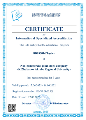 The educational program 8D05301 PhD - Physics is aimed at training highly qualified specialists in the fields of condensed matter physics, theoretical and applied physics. Graduates are equipped to conduct fundamental and applied scientific research, as well as to engage in pedagogical and innovative activities.