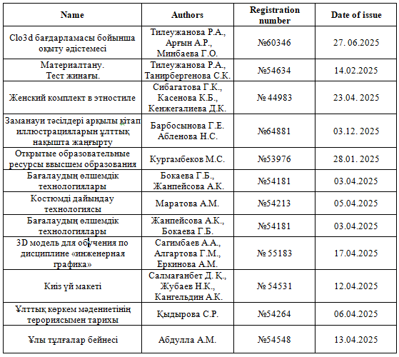 The lectures were organized using the online platform ZOOM for the following specialties: 6B02102 — Design, 6B07207 — Technology and Construction of Light Industry Products," and 6B01405 — Visual Arts, Artistic Labor, Graphics and Projecting."