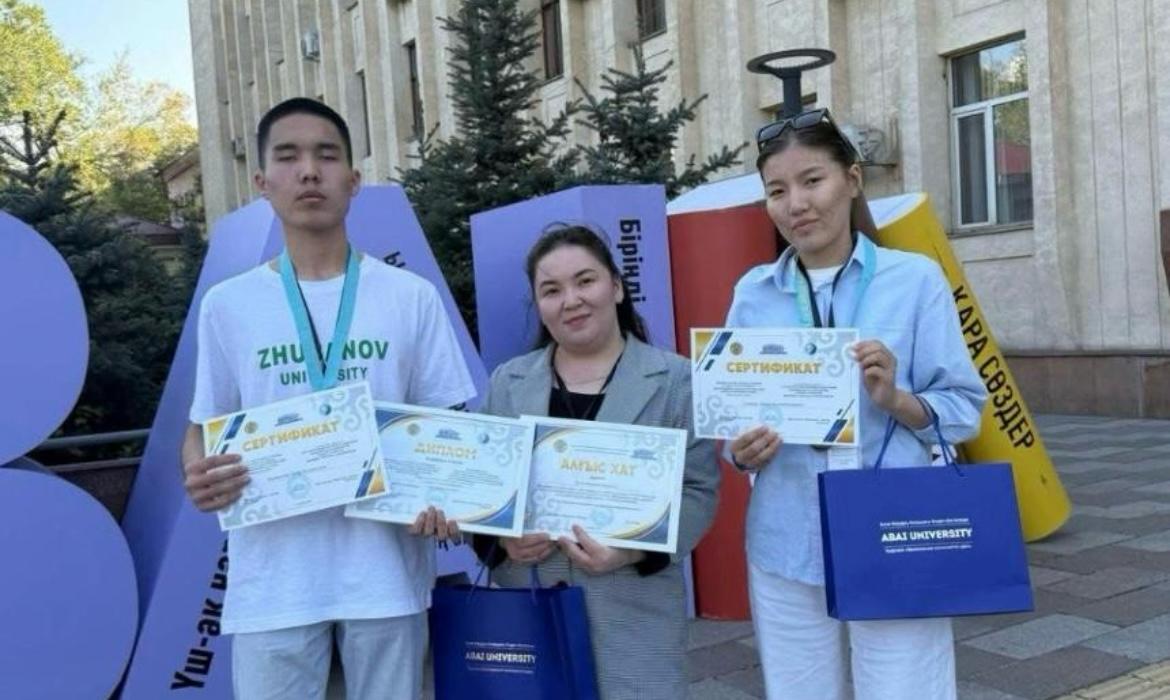 Республикалық студенттік пәндік олимпиадада ББ 6В05102 – Биотехнология – 2 орын, ББ 6В05101 – Биология– 3 орын. А.Байзақ , С.Утюген , А. Бектібаева, М.Мақсот., Ш.Оңғар.. Д.Мырзабаева: Ғылыми жетекшісі: Н. Кемалова, 2025 жыл.