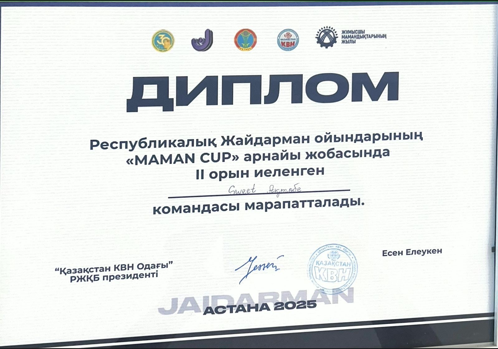 Республикалық Жайдарман ойындары: ”SWEET” командасы, II орын Республикалық арнайы жоба “MAMAN CUP” 2025 жыл