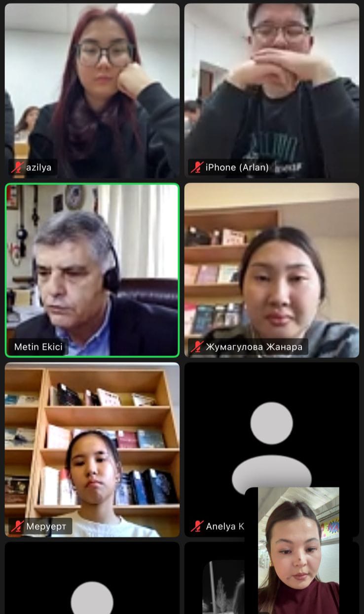 Эгей университетінің (Измир, Түркия) танымал ғалымы, PhD, профессор Метин Экичи 2025 жылдың 17-28 қараша айы аралығында «6В02302-Аударма ісі» білім беру бағдарламасының 4 курс білім алушыларына «Мәдениетаралық қарым-қатынас мәнмәтініндегі арнайы кәсіби шетел тілі» пәнінен дәріс өткізді. Екі аптаға созылған бұл дәрісте профессор кәсіби шетел тілін меңгерудің өзекті мәселелерін, мәдениетаралық коммуникациядағы тілдік құзыреттіліктің рөлін және аудармашыларды кәсіби даярлаудың халықаралық тәжірибелерін жан-жақты талқылады. Студенттер шетел тілін кәсіби деңгейде қолдану дағдыларын жетілдіріп, нақты мысалдар арқылы мәдениетаралық өзара әрекеттесудің ерекшеліктерімен танысты. Дәріс барысында профессор Экичи аударма саласындағы заманауи үрдістерді, кәсіби терминологияны меңгерудің маңызын және әлемдік коммуникациялық платформаларда жұмыс істеу талаптарын атап өтті.