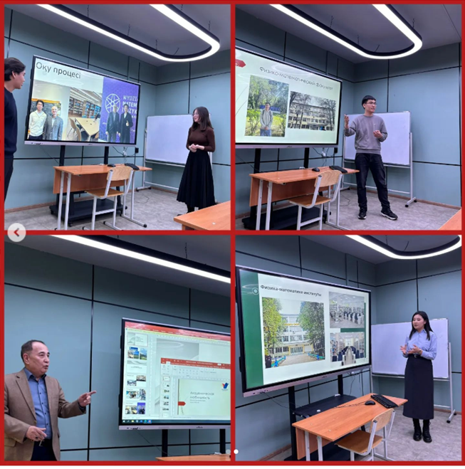 - Физика-математика факультеті мен Батыс Қазақстан мемлекеттік медицина университеті арасындағы шарт негізінде. М. Оспанова, алғаш рет 2023-2024 оқу жылында онлайн форматта ішкі академиялық ұтқырлық бойынша білім алмасу жүзеге асырылды. Марат Оспанов атындағы БҚММУ оқытушылары Д. У. Есмұханов және Жұбанов атындағы АРУ оқытушылары, Б. С. Шамишева, А. Б. Медеуова