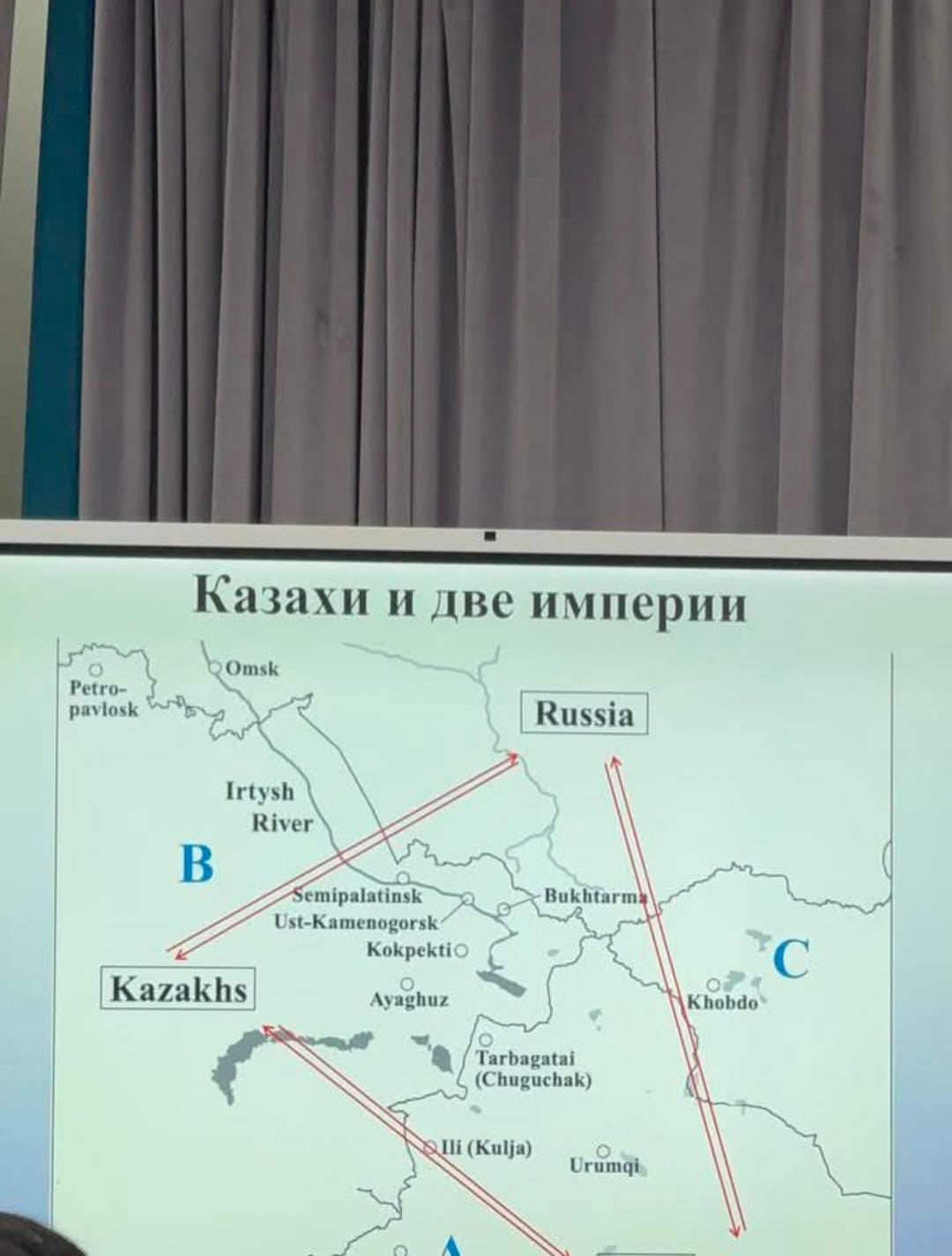 Дәрістің ғылыми құндылығын арттыру мақсатында профессор сирек кездесетін картографиялық материалдар мен мұрағаттық деректерді көрнекі құрал ретінде пайдаланды.