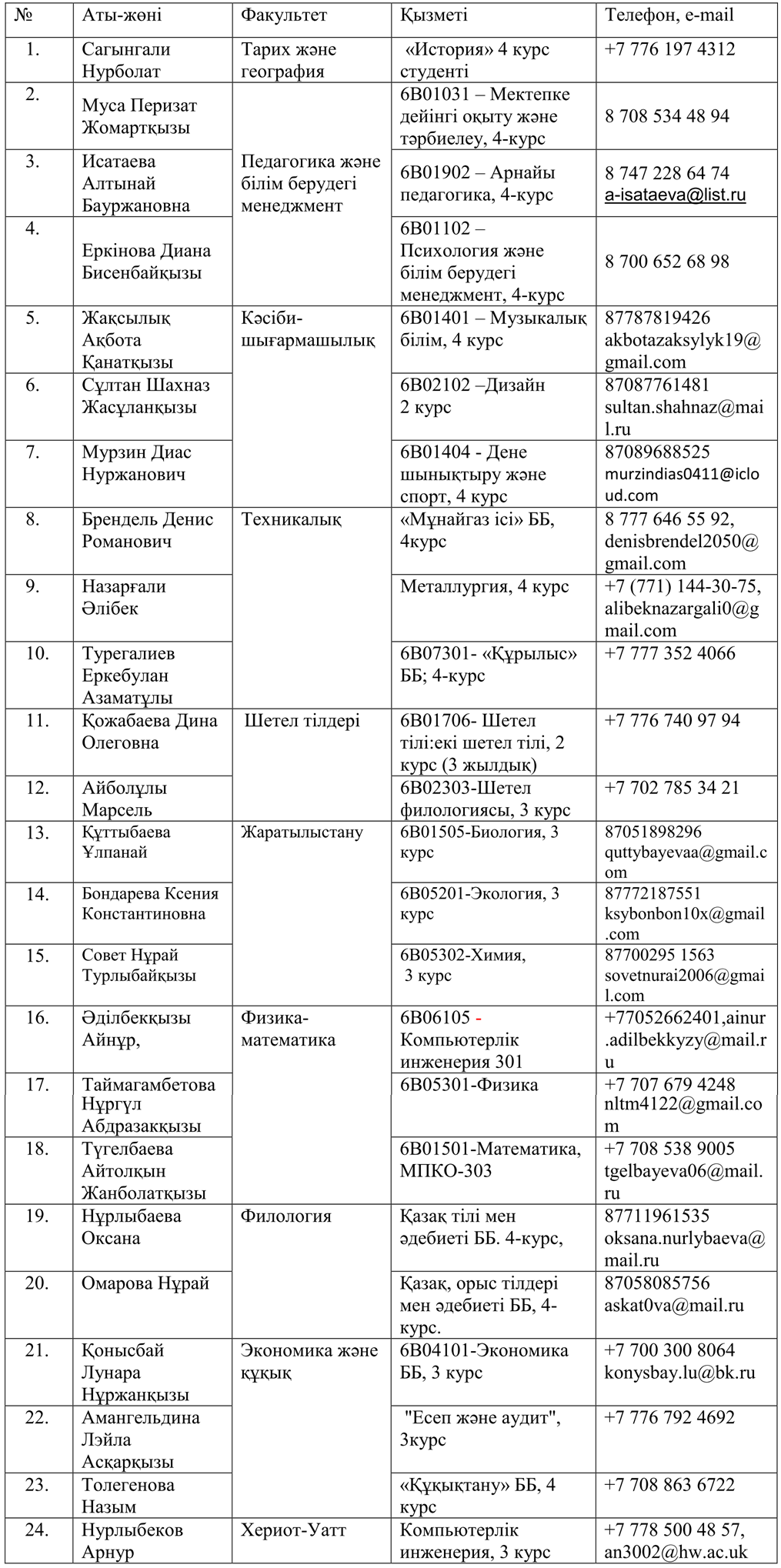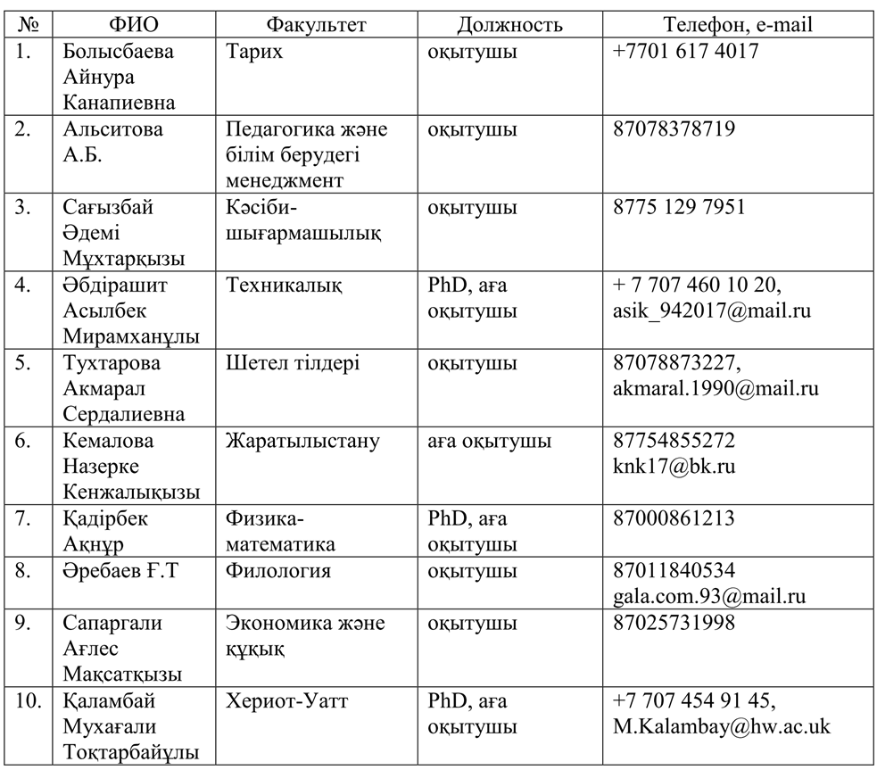 Жас ғалымдар кеңесінің құрамы (2023-2025 оқу жылы)