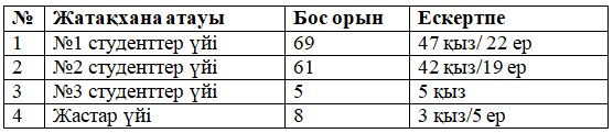 Студенттер үйлеріндегі бос орындар бойынша ақпарат 01.04.2026