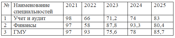 В целях трудоустройства выпускников ежегодно проводится анализ уровня трудоустроенных студентов: