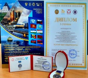 В 2022-2023 учебном году обучающийся ОП 6В05102-Биотехнология была награждена дипломом 2 степени от ХХХХІ международного конкурса научных исследований «Свет Науки-2023». Научный проект защищен на тему «Микробиологические свойства нефтеокисляющих микроорганизмов». Научный руководитель-к.б.н., ст. преподаватель Адманова Г. Б..