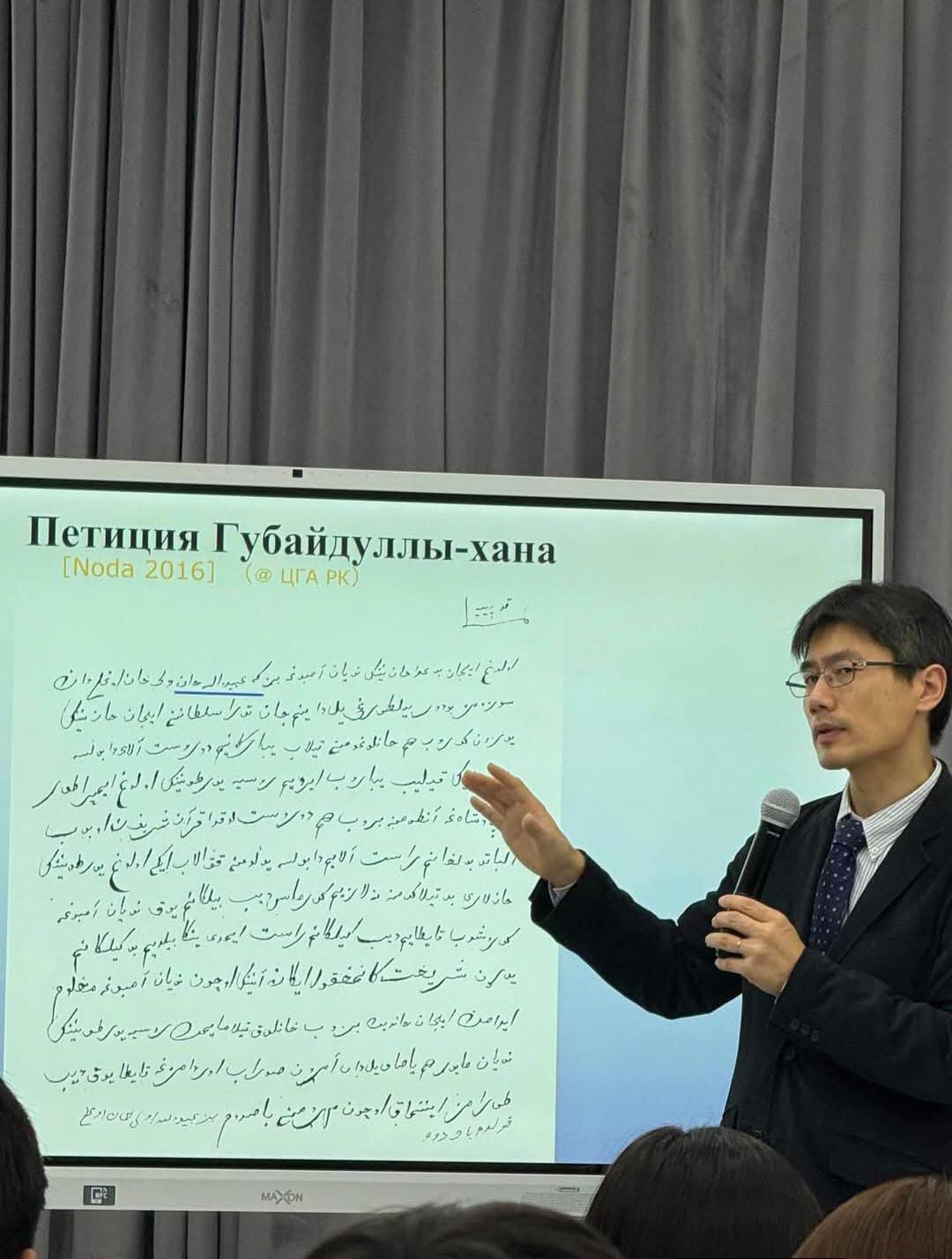 Лекция Джин Нода позволила взглянуть на историю Казахского ханства с новой стороны. Он использовал российские и китайские (в основном маньчжурские) архивные материалы, а также мусульманские источники, включая труды Курбангали Халиди.Учёный подчеркнул мудрую политику казахской элиты во главе с Абылай хан. Особое внимание было уделено переговорам с Цинской империей в 1757 году. Было доказано, что Казахское ханство, находясь между двумя империями, проводило независимую политику и защищало свои интересы.