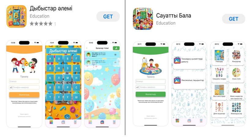 На основе грантового финансирования Министерства науки и высшего образования Республики Казахстан на 2023–2025 годы для научных и (или) научно-технических проектов, реализованного Актюбинским университетом им. К. Жубанова, в рамках проекта ЖТН AP19678465 «Использование технологий дистанционного обучения для детей с особыми образовательными потребностями в регионе Актобе» были созданы мобильные приложения «Сауатты бала» и «Дыбыстар әлемі». Научный руководитель - к.п.н., доцент, ассоциированный профессор М.Н. Есенгулова; исследовательская группа: к.п.н., доцент, ассоциированный профессор А.К. Тогайбаева, PhD, доцент Д.Ж. Рамазанова, магистранты Б.Б. Ертлеуова, К.М. Кеншиликoва, М.А. Аманжол.