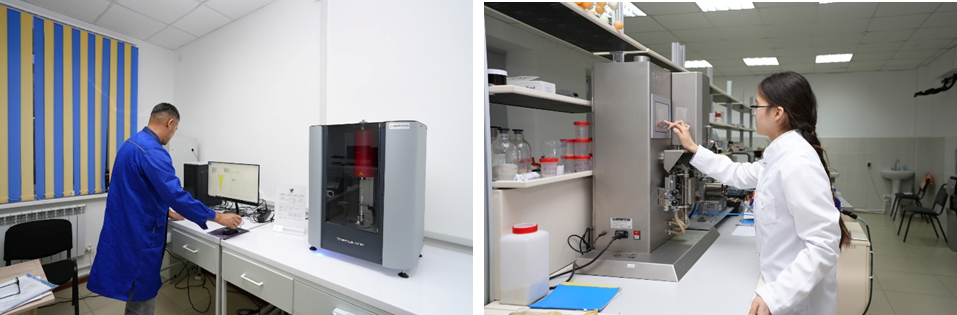 Материально-техническая база лаборатории «Химия и экология» предназначена для проведения химических, аналитических и экологических исследований, включая анализ техногенных отходов и объектов окружающей среды. В лаборатории используется масс-спектрометр с индуктивно-связанной плазмой, элементный анализатор UNICUBE (Elementar, Германия) и спектрофлуориметр RF-6000 компании Shimadzu (Япония).